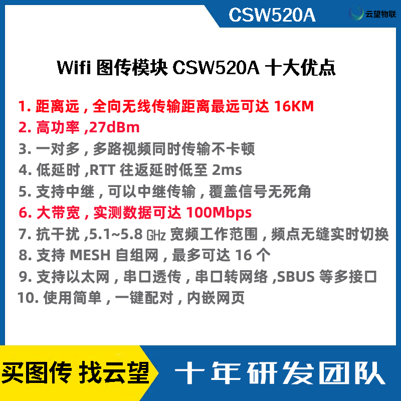 远传输距离 | CSW520A:>12KM(空旷无干扰) |